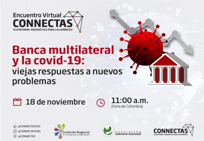 En este Encuentro, organizado por la organización Ambiente y Sociedad en alianza con CONNECTAS, los expertos Laura Gil, periodista y analista de política y relaciones internacionales; Javier Dávalos, abogado de la organización AIDA; y Vanessa Torres, coordinadora del área de Financiamiento y Derechos Socioambientales de la organización Ambiente y Sociedad, conversarán sobre el rol de la banca multilateral en tiempos de la covid- 19. Se analizará el impacto de instituciones como el Banco Interamericano de Desarrollo, el Banco Mundial y el Banco de Desarrollo de América Latina, al ser financiadores de proyectos de reactivación y generación de empleo.