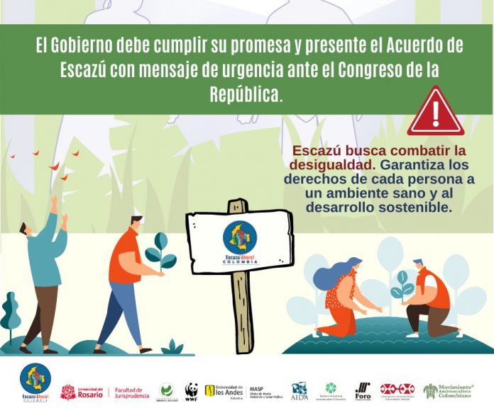 Desde la Alianza por el Acuerdo de Escazú en Colombia reiteramos la importancia de que en tiempos de crisis el Gobierno confirme su liderazgo por la democracia ambiental y la protección de las personas defensoras del ambiente. La presentación del proyecto de ley ante el Congreso es una muestra de voluntad política en la promoción de una agenda ambiental que promueve la agenda para el desarrollo sostenible 2030. El proyecto de ley y la exposición de motivos ya están listos, solo falta su radicación con mensaje de urgencia y que se agenden los debates para su aprobación.