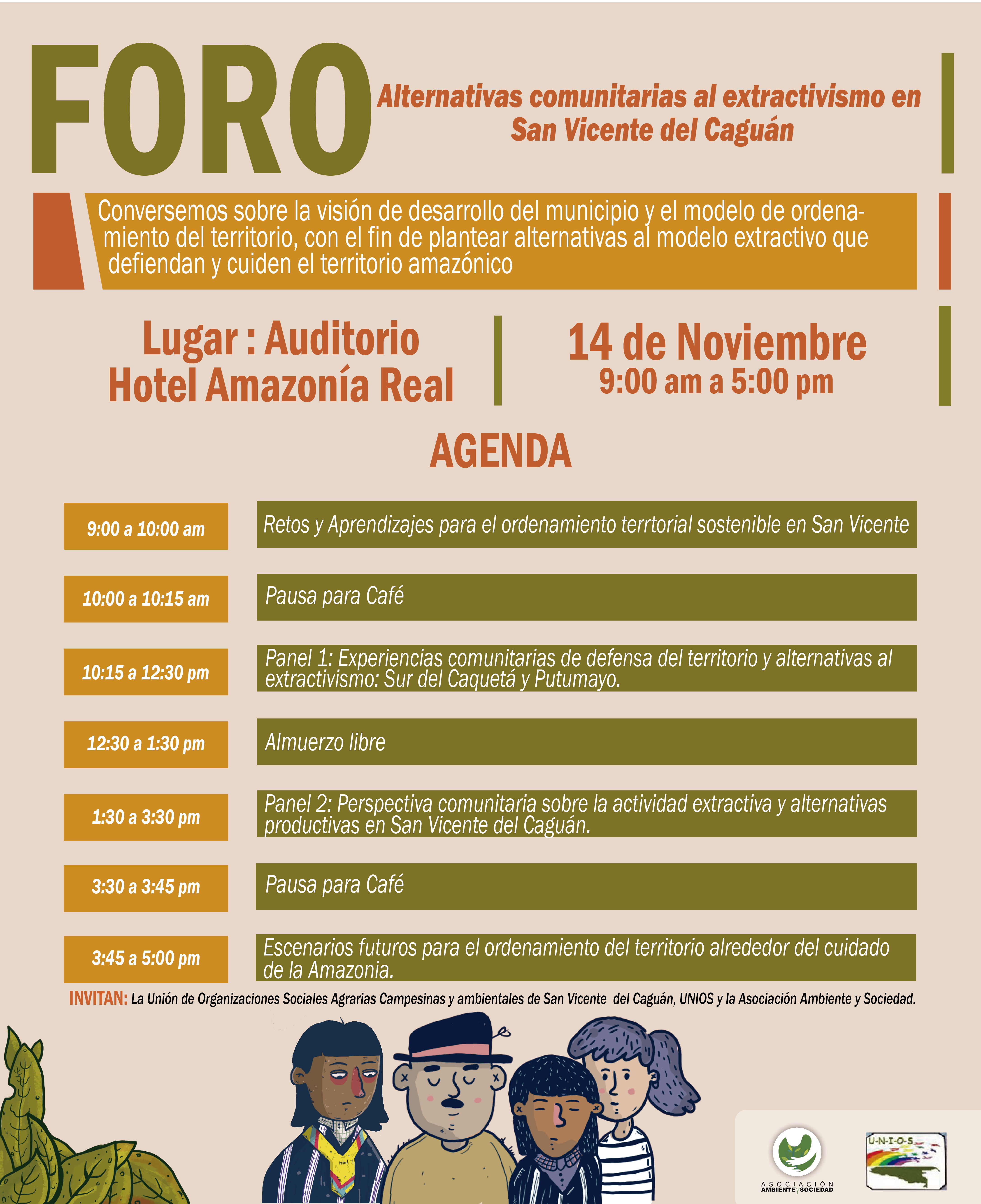 En este encuentro se busca propiciar una discusión sobre la visión de desarrollo y el modelo de ordenamiento del territorio de San Vicente del Caguán, con el fin de pensar en alternativas productivas para la defensa y cuidado del territorio amazónico.