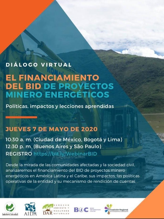 Seminario web: “El financiamiento del BID de proyectos minero energéticos: Políticas, impactos y lecciones aprendidas”