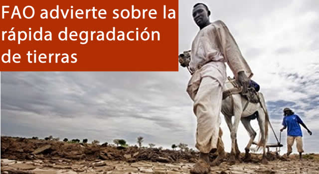 Técnicos de la Organización de Naciones Unidas para la Alimentación y la Agricultura (FAO), advierten que con la actual degradación de tierras de cultivo, en 60 años no será posible encontrarlas en superficies adecuadas.