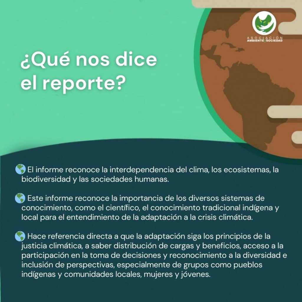 Este segundo reporte aborda la importancia de los diversos sistemas de conocimiento, como el científico, el conocimiento tradicional indígena y local para el entendimiento de la adaptación a la crisis climática. También hace referencia directa a que la adaptación siga los principios de la justicia climática, distribución de cargas y beneficios, acceso a la participación en la toma de decisiones y reconocimiento a la diversidad e inclusión de perspectivas, especialmente de grupos como pueblos indígenas y comunidades locales, mujeres y jóvenes.