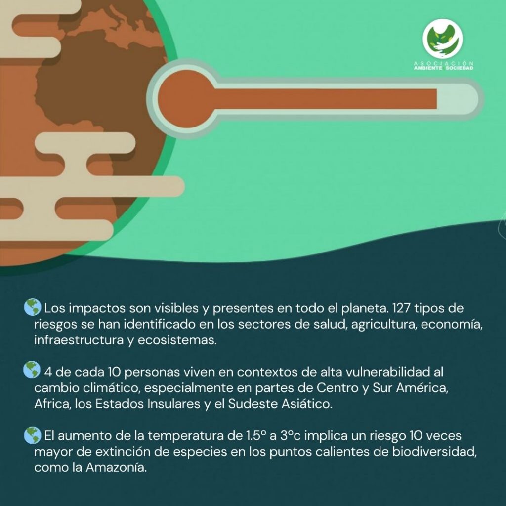 Dentro de los datos más importantes está los impactos visibles y presentes en todo el planeta. 127 tipos de riesgos se han identificado en los sectores de salud, agricultura, economía, infraestructura y ecosistemas.