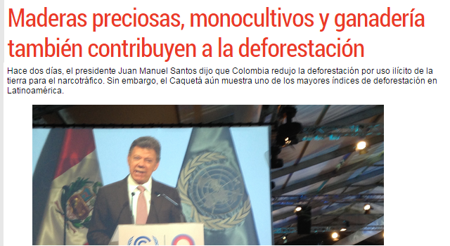 Catorce6. El viernes, el presidente Juan Manuel Santos dijo que Colombia redujo la deforestación por uso ilícito de la tierra para el narcotráfico. Sin embargo, el Caquetá aún muestra uno de los mayores índices de deforestación en Latinoamérica.