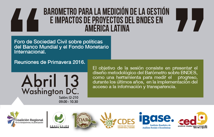 Foro de Sociedad Civil sobre políticas del Banco Mundial y el Fondo Monetario Internacional. Reuniones de Primavera 2016. Washington DC.