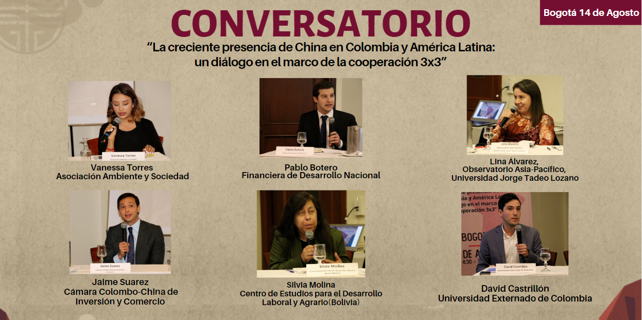 En la tarde del pasado 14 de agosto en Bogotá se llevó acabo el conversatorio “La creciente presencia de China en Colombia y América Latina: un diálogo en el marco de la cooperación 3×3”. El encuentro fue convocado por la organización Ambiente y Sociedad junto con el Observatorio Asia-Pacífico de la Universidad Jorge Tadeo Lozano y la Cámara Colombo-China de Inversión y Comercio. Durante el encuentro se resaltó la necesidad de abrir espacios de diálogo entre empresas chinas, financiadores y comunidades para la prevención de conflictos sociales y ambientales en la ejecución de megaproyectos.