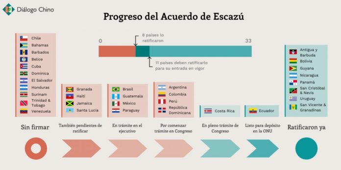 Con esas ratificaciones, el innovador acuerdo regional llegó a 8 y está muy cerca de las 11 necesarias para convertirse en realidad. Sin embargo, las cuarentenas, el distanciamiento social y otras medidas de urgencia que han tomado los países latinoamericanos para detener al nuevo coronavirus han ralentizado el ritmo de aprobación.